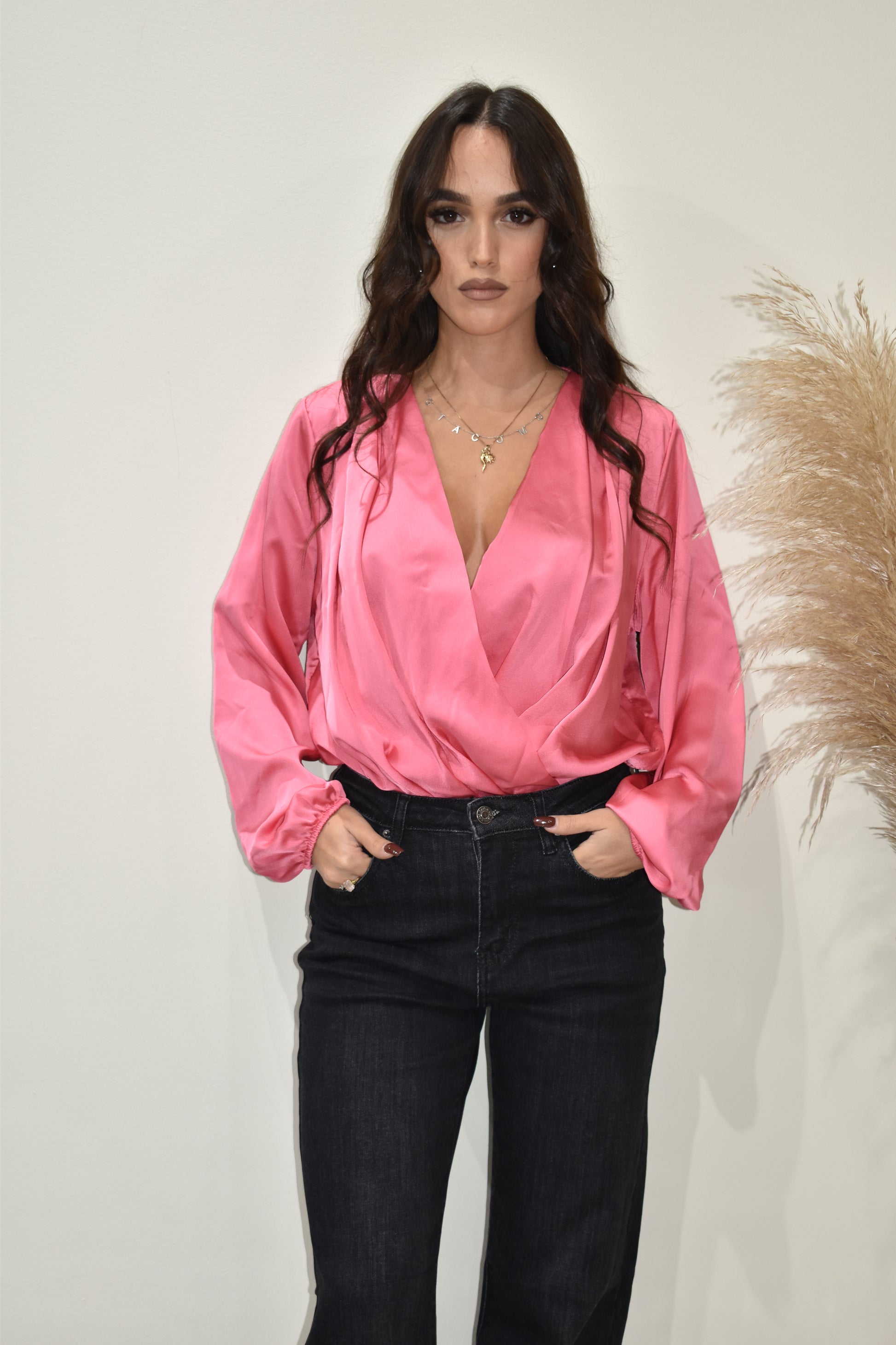• Body con scollatura profonda che valorizza il décolleté con eleganza e carattere. Il design audace esalta le forme naturali, perfetto per chi desidera un capo che faccia statement. Versatile da indossare sotto abiti trasparenti o come pezzo protagonista per serate speciali. Realizzato con cura nei dettagli, offre una vestibilità impeccabile e una silhouette raffinata.