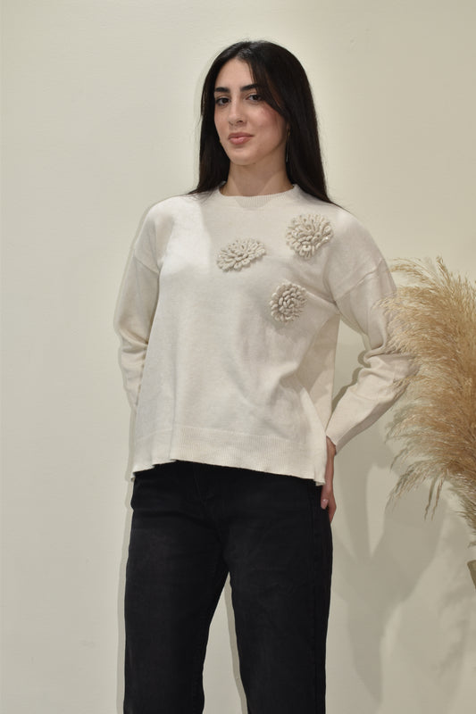 Prezzo di listino Da €26,99Prezzo di listinoPrezzo unitario / per€39,99Prezzo scontato Da €26,99Maglione in filato morbido con vestibilità leggermente morbida. Il design è valorizzato da eleganti applicazioni floreali in rilievo sul davanti, che aggiungono movimento e un tocco raffinato. Rifinito con girocollo e bordi a costine, è un capo versatile e femminile, ideale per look casual chic o più ricercati.