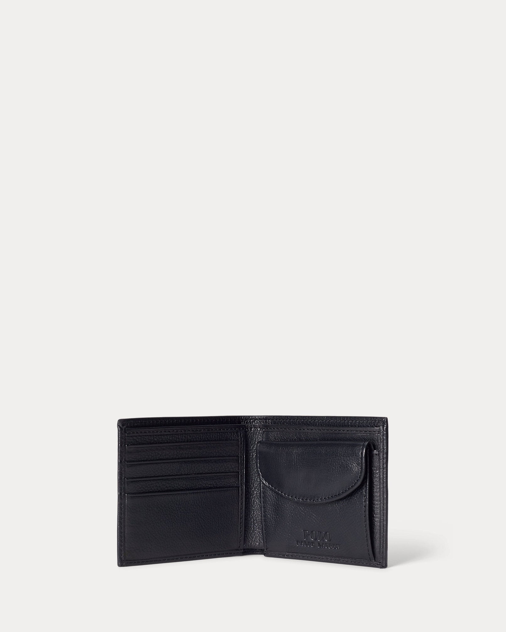 Questo portafoglio in pelle martellata presenta all'interno numerose tasche, tra cui uno scomparto con automatico per le monete.