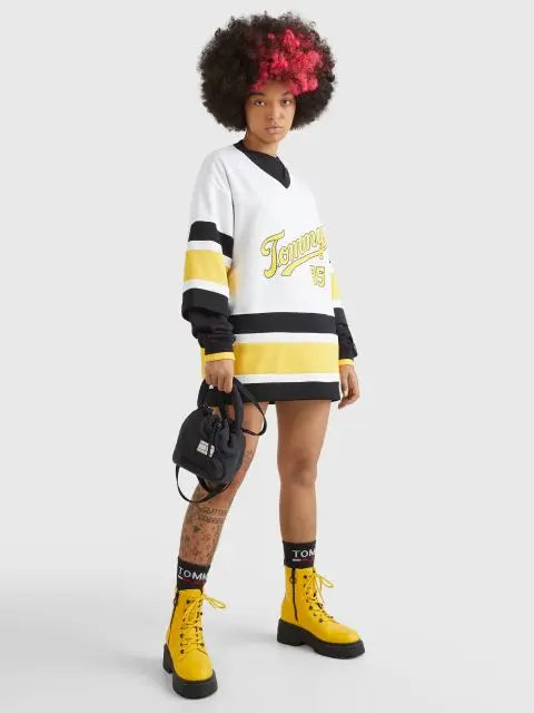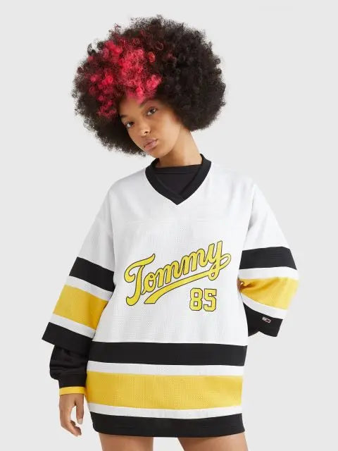 • La maglia da basket oversize donna di Tommy Hilfiger è un capo sportivo e alla moda, ispirato allo stile urbano e dinamico. Realizzata con materiali di alta qualità, offre comfort e libertà di movimento durante l'attività sportiva o il tempo libero. Caratterizzata da dettagli distintivi e il logo del marchio in evidenza, questa maglia aggiunge un tocco di stile e originalità al look. La maglia da basket oversize donna di Tommy Hilfiger è perfetta per esprimere la propria personalità con un tocco di eleganza sportiva.